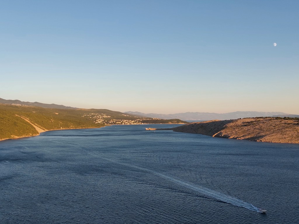 Ma torniamo a noi, arriviamo al ponte per arrivare all’Isola di Krk e scopriamo che è gratuito in quel periodo, non sappiamo se è perchè è Agosto oppure per incentivare il turismo dopo la pandemia. Attraversandolo avrete una vista mozzafiato sull’isola e sulla costa, noi avendola fatta verso il tramonto, abbiamo potuto fare delle foto spettacolari.
