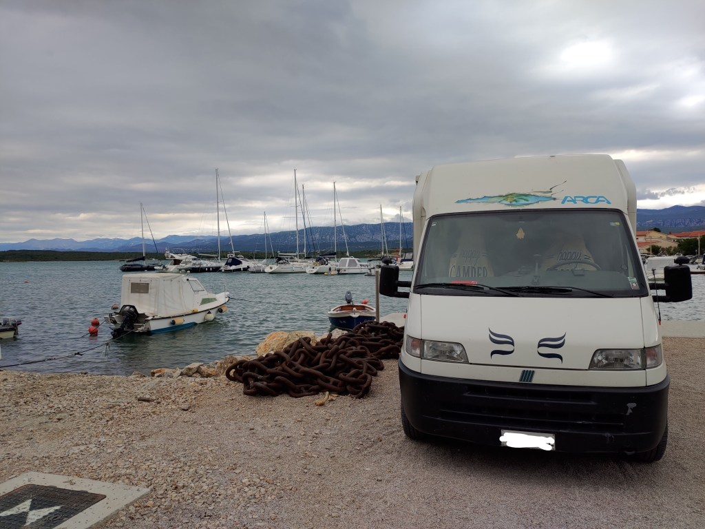 Ripartiamo dopo pranzo per cercare un posto dove fermarci nell’altra parte dell’isola, e dopo vari giri tra autocamp e parcheggi arriviamo alla spiaggia di Malinska dove c’è un parcheggio privato che ti permette di dormire, costa 20 euro al giorno.