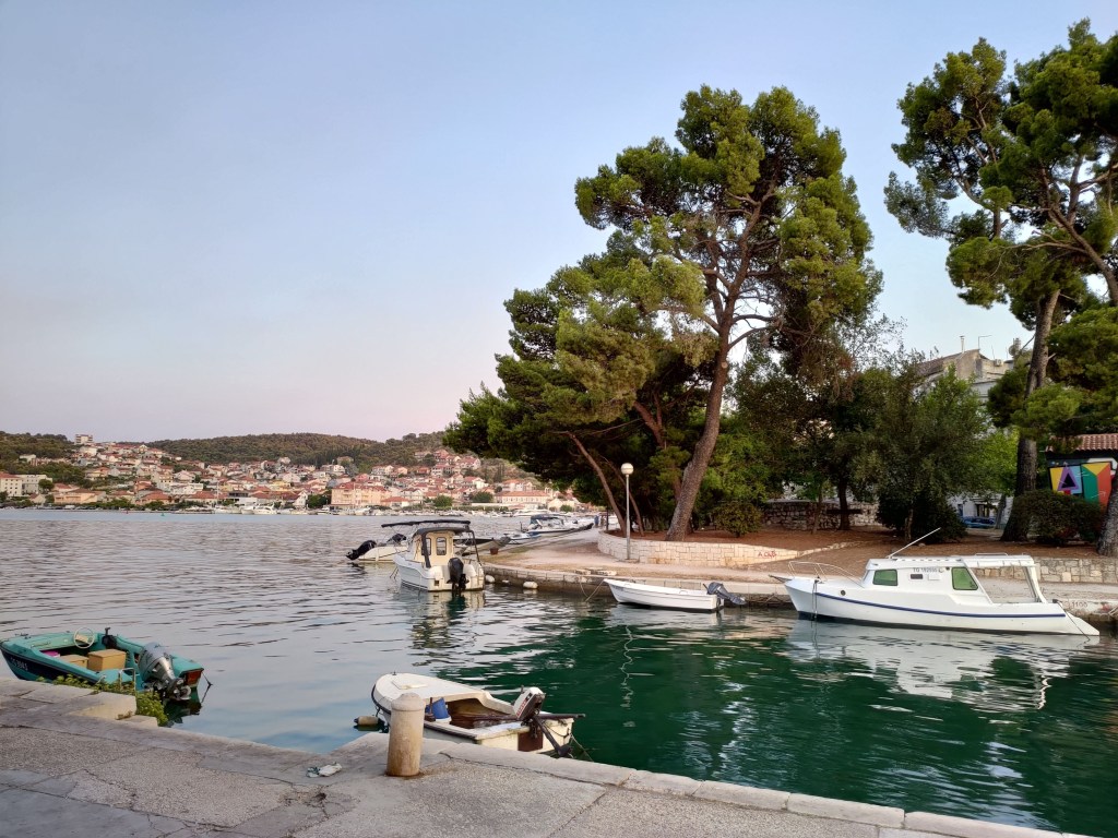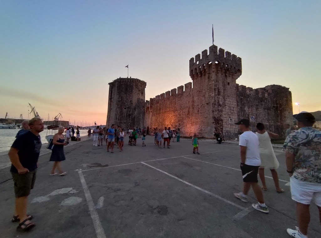 Dopo aver passato un pomeriggio al mare la sera ci spostiamo a Trogir prendendo, come detto, il bus 37, che passa circa ogni mezz’ora dalla fermata vicino al parcheggio ( gli orari sono presenti sul sito per avere maggiori informazioni e i biglietti sono acquistabili direttamente sul bus, 1,80 euro circa a tratta).