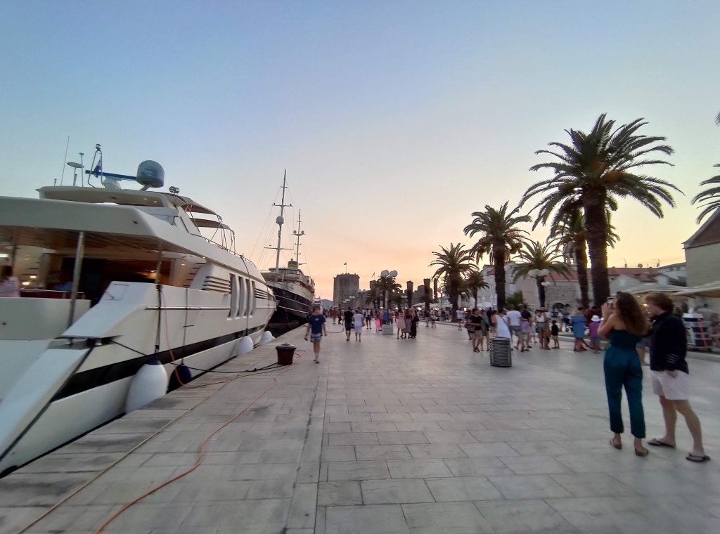 Trogir è una piccola isolotta che è collegata alla terrà ferma da due ponti ed è circondata da mura. Glamour e antica allo stesso tempo, tra i suoi vicoli troverete palazzi rinascimentali barocchi e romanici, e un enorme ed esclusivo porto turistico. Il molo è molto suggestivo con locali e yacht enormi in ogni angolo. In questa città si respira meno l’aria selvaggia della Croazia e più quella di città turistica europea.